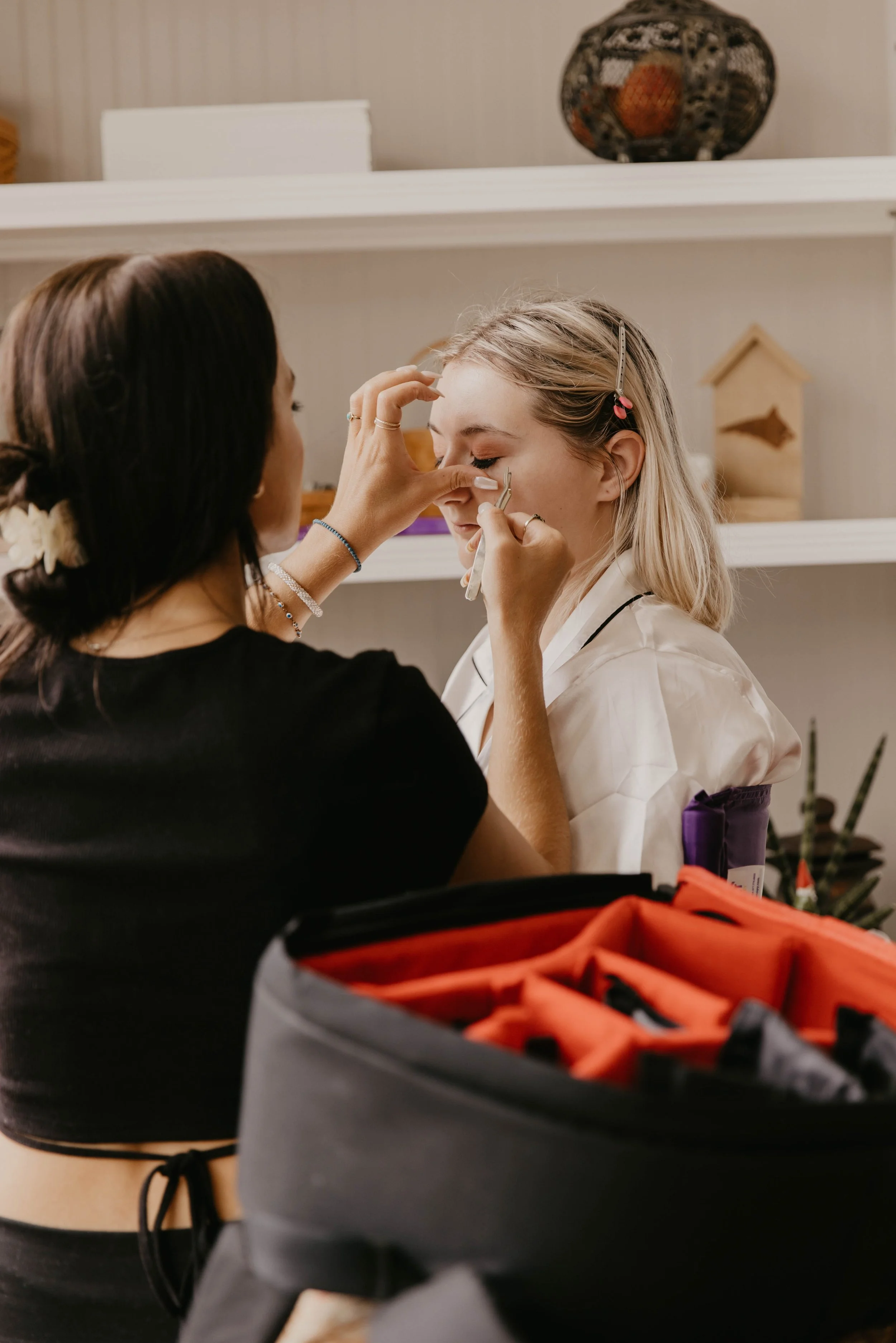 Makeup by Nikoletta’s team did an incredible job helping Kaitlin and her girls get wedding ready before they each slipped into their dark green dresses of varying styles and Kaitlin got into hers.